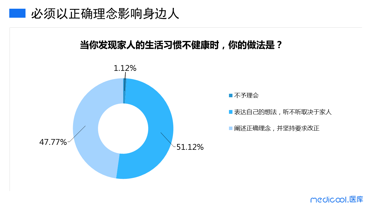 也有47.77%的医护表示,一定要阐述正确的理念,并且要求对方及时改正。以专业从医者的态度坚决消灭身边各种危害健康的恶习,这大概是我们广大医护们的职业本能!