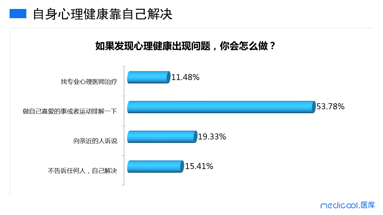 世卫组织关于健康的定义是这样的:健康乃是一种在身体上、精神上的完满状态,以及良好的适应力,而不仅仅是没有疾病和衰弱的状态。当医护遇到心理健康上的问题时,会选择如何处理呢?