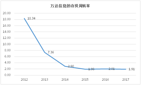我们再来看看存货周转率,2017年万达信息的存货周转率为1.91次,较前几年大幅下降。这也意味着万达信息的存活周转天数在190天左右。这么高的存货周转天数,严重影响了万达信息将存货转换为现金或应收账款的速度。同时严重影响了现金流以及企业偿债能力。