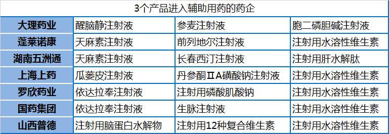 多个产品入选辅助用药的药企