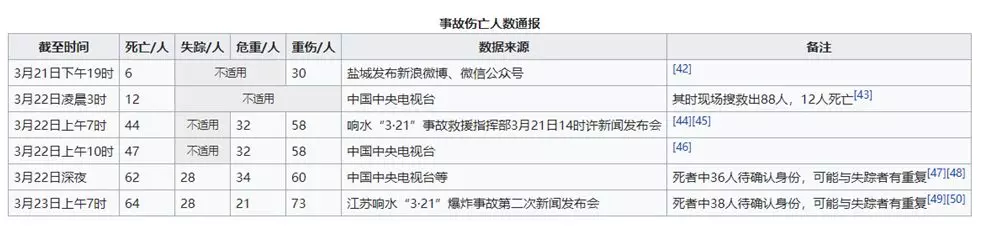 根据盐城市新闻办发布,截至3月23日上午7时,事故已造成64人死亡、共收治伤员617人,其中21人危重、73人重伤,523人轻伤。国务院认定本次事故为特别重大事故。