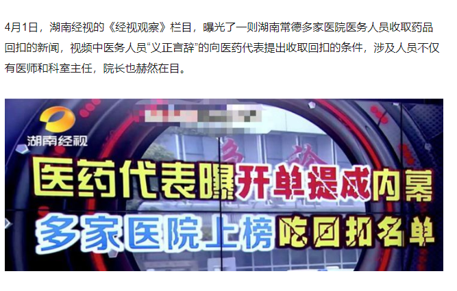 PS:很多医生会辩解说药价是国家定的,回扣跟他们无关,其实恰恰相反,因为即使有再多的好产品,这批医生会选择有回扣的高价产品,A不行就换B,回扣就像一个指挥棒,国家不可能面面俱到,回扣少空间低的药品会被自动过滤,因此为了一点利益,让老百姓冒着生命危险,你还觉得你冤枉吗?