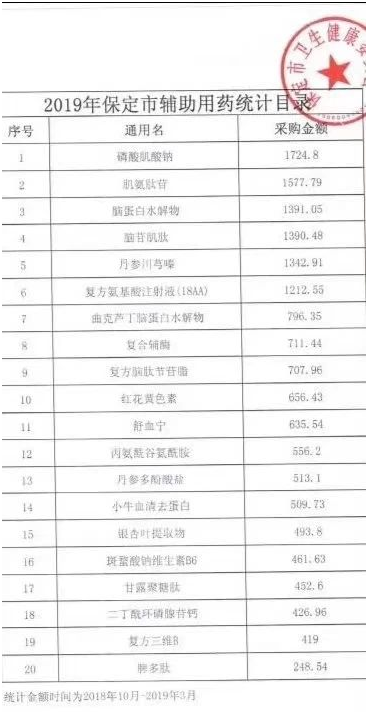 因此2018年12月,国家卫健委发布《关于做好辅助用药临床应用管理有关工作的通知》,专项文件,《通知》提出要建立国家版辅助用药目录,要求各级机构从上至下要严控目录内药品的使用,一改滥用现象,让合理用药真正回归医疗服务。各地从去年十二月开始由各地申报目录,3月份,坊间流传的73个辅助用药初选品种,Dr.2写过一篇分析药企和品种市场的文章(《国家为什么要制订辅助用药目录?因为医生有创收的动力去突破红线!》)