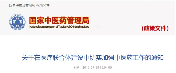昨日(7月29日),国家中医药管理局和国家卫健委联合印发《关于在医疗联合体建设中切实加强中医药工作的通知》提出推进中医医院牵头组建多种形式的医联体,同时明确提出“三个不得”,即在医联体建设过程中,不得变相地取消、合并中医医院,不得改变其功能定位,不得以各种理由在事实上削弱中医医院建设。