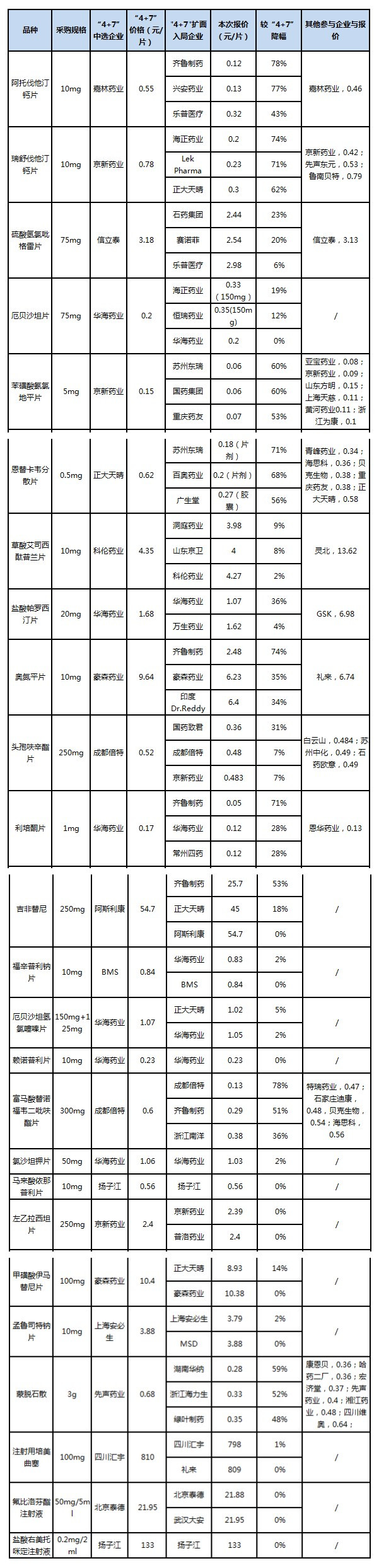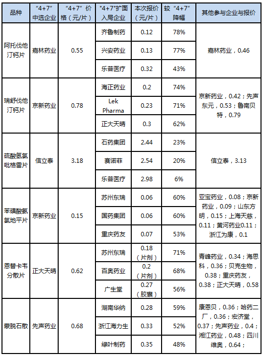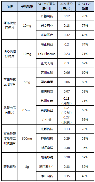 但是没过如果,只有结果。附上本次扩面集采汇总数据,以及“4+7”集采对比表格: