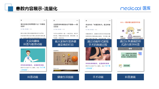 在患者社区向患者普及疾病和药品知识,通过音频、视频、动画等可视化科普内容制作,对的目标人群和家属,进行患教、生活方式教育等,直接触达,精准营销。