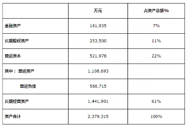 从表1-1 中可以看出,科伦药业在2019年9月30日长期经营资产为144亿元,占资产的61%,营运资本需求为52亿元,占资产的22%。两大资产类别合计为196亿, 占资产的83%。我们可以判断科伦药业的资产主要在经营资产上,重资产形态明显。