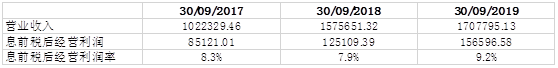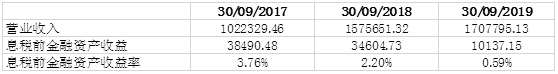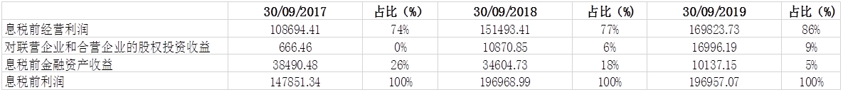 由于金融资产收益的波动较大,从表6-3,可以看到截止到2019年9月30日过去12个月,息税前金融资产收益率只有0.59%,对利润率的影响越来越小。