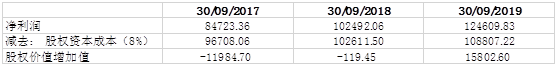 反观之前两年,股权价值增加值为负,也就是说即使净利润都为正值,公司也没有给股东创造价值。