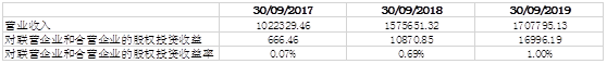 如表6-2 所示, 科伦药业的对联营、合营企业的股权投资收益率在不断增长,截止于2019年9月30日的过去12个月, 公司对联营、合营企业的股权投资收益率达到1%。对利润率产生了较大影响。