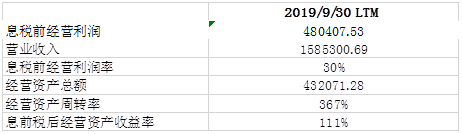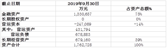 截止于2019年9月30日过去12个月的息前税后金融资产净收益为3.34亿元。收益率仅为2.1% (表7-1)。远远低于其经营资产所产生的收益率以及公司的资本成本(假设公司的股权成为为8%)。