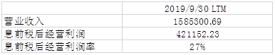 如表4-1所示,截止于2019年9月30日的过去12个月,迈瑞医疗创造了158亿元的营业收入,毛利为104亿元,毛利率为65%。这告诉我们迈瑞医疗是一个毛利率非常之高的企业。