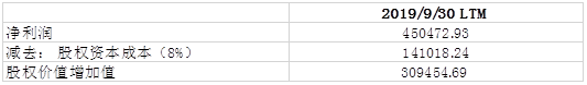 我们假设迈瑞医疗的股东的预期回报为8%, 根据表9-1可知, 迈瑞医疗在截止于2019年9月30日的过去12个月为股东创造了31亿超出股东预期的回报。实在令人惊叹。