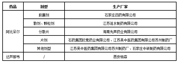 再者,李兰娟院士所研究的药物“阿比朵尔”和“达芦那韦”涉及厂家如下。