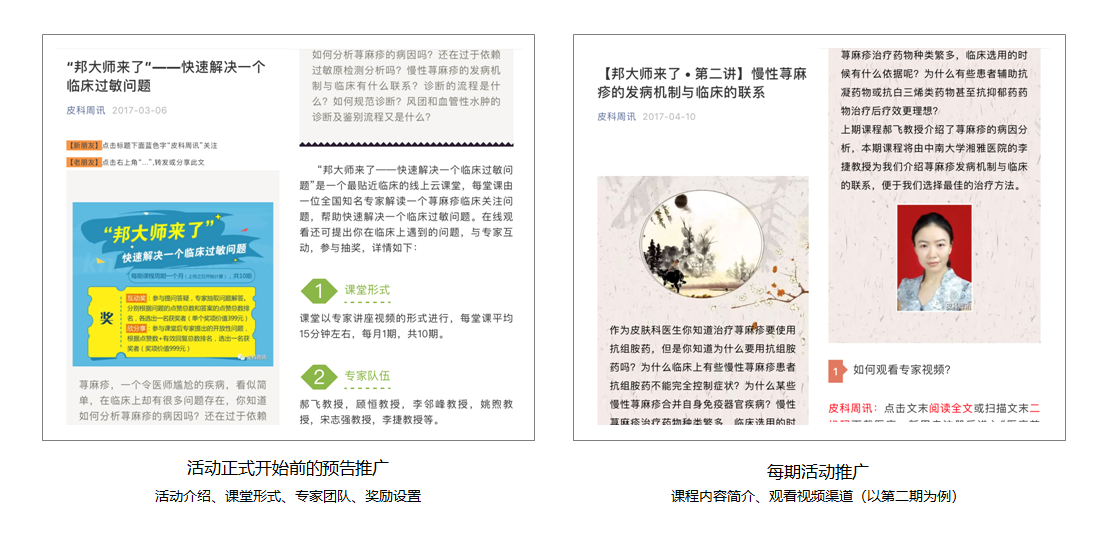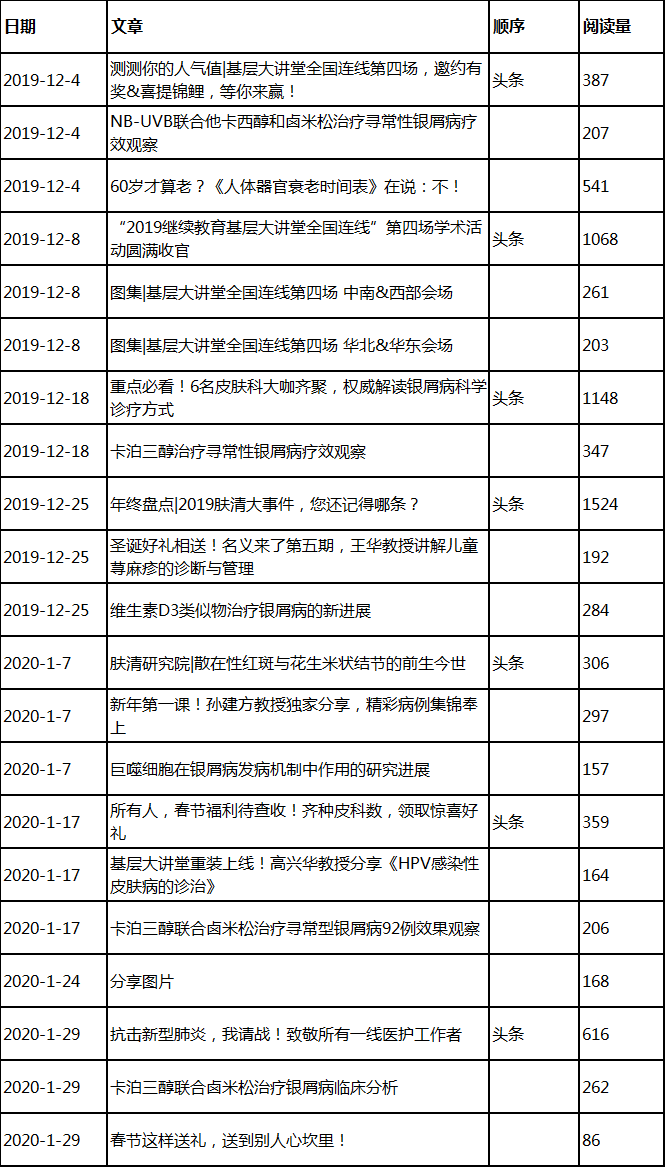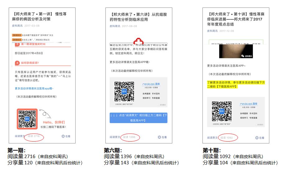 澳美制药的“肤清家园”是一个面向皮科医生的学术交流平台。该公众号从2016年三月开始发布文章,运营了四年,我们来看看这个公众号现在发布文章的质量和触达医生的实际效果如何?从最近2个月的文章发布和数据(2019年12月和2020年1月)来看:1、这两个月一共发布21篇文章,发布频率:每周发布一次,每次2-3篇。其中7篇头条的阅读量平均数为772,非头条的阅读量平均数为241,平均每篇阅读量418(截至2020年2月19日)。2、21篇文章中,有8篇是文献综述、专家采访,3篇教授PPT分享,从文章的内容来看,该账号推文给医生有价值信息不多,一些广告软文频繁推送,可能对用户造成困扰。剩下的广告内容主要是广告软文、新闻报道、活动预热介绍等。相同的广告重复发送,占了所有推文的将近一半,而且都在头条的位置。即使像是学术信息的2019年12月8日一次推送,三篇文章都是关于基层大讲堂全国连线第四场学术活动的介绍,而且都是现场嘉宾、观众的图片罗列,没有向阅读者传递任何有价值的会议内容或者PPT。这类图文更像是企业内部会议的总结资料。2019年12月4日的推文:60岁才算老?《人体器官衰老时间表》在说:不!。这一篇NMN保健品广告,NMN是香港澳美制药旗下美国保健品牌澳玛家的一款抗衰老的保健品。2020年1月29日的推文:春节这样送礼,送到别人心坎里!再次反复硬广NMN:除夕守岁熬夜吃NMN;春节酒局满档备NMN;还父母年轻容颜送NMN;有效防治多种疾病用NMN……该公众号里确实有子目录肤清学院,有热门直播、名医专刊、特殊病例,还有一系列视频课程。但是内容不完整不系统,而且更新内容又少又慢,基本上浏览个半小时,后面就没什么新东西了。不知道自建平台的那么多预算花到哪里去了,那么多专职人员在干什么?不能用皮肤科医生人数少不活跃为理由,因为同样是运作了四五年,华邦制药的平台流量要比澳美的高一个数量级,同样是义诊广告,华邦4500,澳美300多,再扣掉自己公司内部阅读1-200,实际上基本没有几个医生搭理。甚至还不如三年前华邦与医库合作的数字营销。以迪皿为例,“邦大师来了”专家讲堂(迪皿)项目自2017.3.8日上线,共十期课程,受到了许多皮肤医生的欢迎,推广内容和数据如下:1、阅读分享人数多而稳定。“邦大师来了”专家讲堂推广文平均每篇文章的阅读数达到1434,平均每篇分享的人数有137人。每期差别不大,数据稳定。而这只是第一次推广,后面回放第二次推广又会来首发一半左右的流量。2、推广内容以学术内容为主,不带产品广告,医生接受程度高,不给医生带来困扰。3、系统运营,有效触达。一期讲堂两次推广,一次课程介绍一次课程回顾,都能够有效的向目标医生传达学术信息,同时帮助医生总结有效信息。