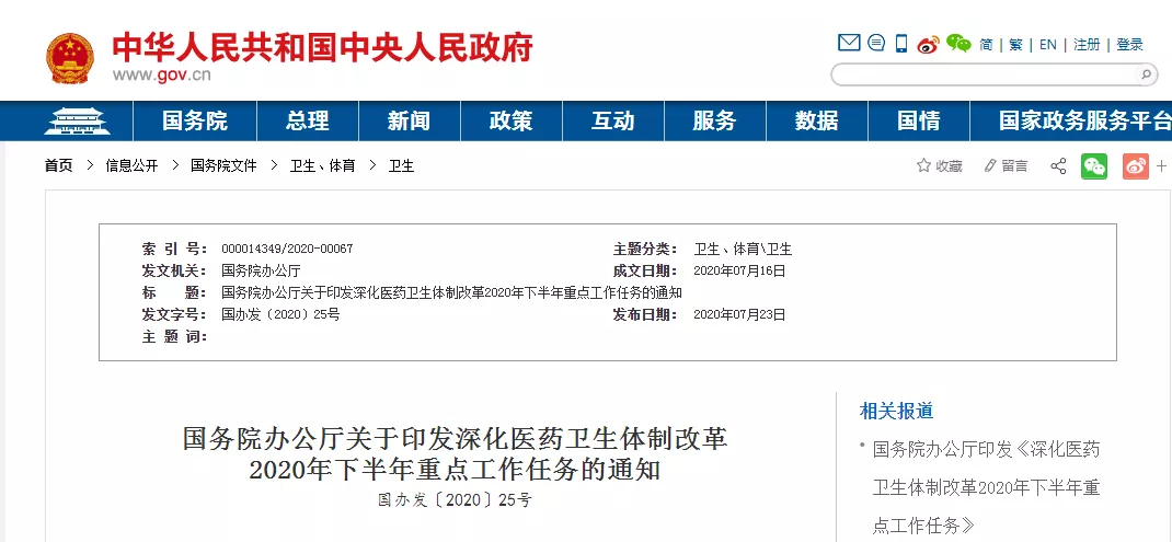 国务院部署下半年医改方向,任务清单来了