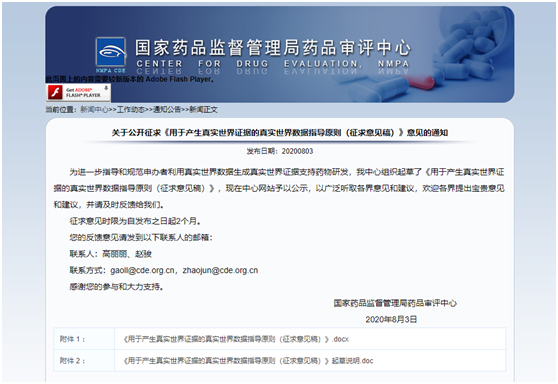 8月3日,中国国家药监局药品审评中心(CDE)最新发布关于公开征求《用于产生真实世界证据的真实世界数据指导原则(征求意见稿)》意见的通知。真实世界数据(RWD)是产生真实世界证据(RWE)的基础,高质量的适用的真实世界数据是产生真实世界证据的前提条件。