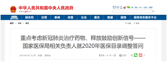 熊司长提到:在7类情形中,将2015年1月1日至工作方案发布(2020年8月17日)期间新上市或者适应症/功能主治发生重大变化的药品均纳入评审范围,体现了鼓励创新的鲜明导向。在征求意见过程中,部分创新药企业及行业协会对拟新增药品截止时间提出了意见建议。医保局认真考虑研究,将新药截止时间从去年底放宽至今年目录调整方案发布前,即2020年8月17日,这充分体现了医保局鼓励支持创新的态度。对于那些刚刚获批的创新药,特别是具有自主知识产权的创新药,给予更快的准入机会。同时,将符合条件的新药纳入目录,也能够让广大参保患者更早受益。