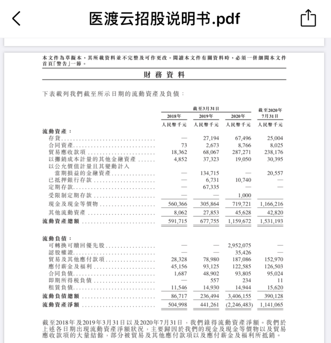 2019年医渡云有存货2700万左右,2020年3月31日有存货6700多万,2020年7月31日又恢复到了2500万左右。而且在其他金融资产并没有什么变化的情况下,现金储备从7.19亿猛增至11.66亿,要么就是有新股东的增资,或者同步叠加了一个大额防疫物资销售。因此我们有理由相信,3月31日止的存货至少有4000万左右为防疫物资的库存,口罩消毒剂手套等,部分产品确实也归类为医疗器械,那么这个国际客户显然就是购买防疫物资的进口商之类的了!疫情从1月底启动,这个时候或前后,公司可能开始备货并销售或者捐赠了一部分,而2,3,4月份是国外防疫物资的销售高峰,静态时点的库存只是循环业务中的一个瞬间,而且由于进出价差距很大,其毛利率很可能大幅高于大数据平台。所以我们预测截止3月31日,很可能防疫物资销售额比较大,至少也为几千万,否则巨大的库存无法解释。