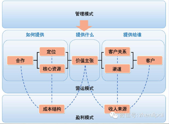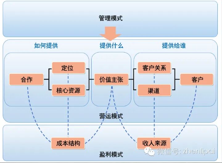 就是如何从企业营运模式中赚到钱。我们知道:利润=收入-成本,那么盈利模式就包含收入来源以及成本结构:1.收入来源:收入是企业从客户群体中获取的现金收入。如果客户是营运模式的心脏,那么收入来源就是动脉。企业要不断地问自己,什么样的价值能让客户心甘情愿为它掏钱?只有回答这个问题,企业才会找到收入来源。2.成本结构:这是指运营一个商业模式所引发的所有成本,它包括:创造价值,提供价值以及维护客户关系等活动中产生的所有成本。