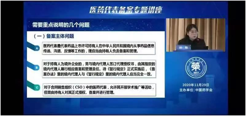 11月29日,在《医药代表备案管理办法(试行)》(以下简称办法)将正式施行的前夕,中国药学会线上举办了医药代表备案专题讲座。重点有以下内容:1、明确医药代表的定义是以实际工作内容来界定的,而不是以表面的岗位名称定义。给医疗机构人员进行信息传递、学术推广、不良反应收集反馈的人员均在需要备案的范围内,不仅仅局限于企业内部认定的医药代表这一职位,医学部,市场部,学术部,政府事务部的人员若从事与上述三部分内容相关的工作,也需备案。