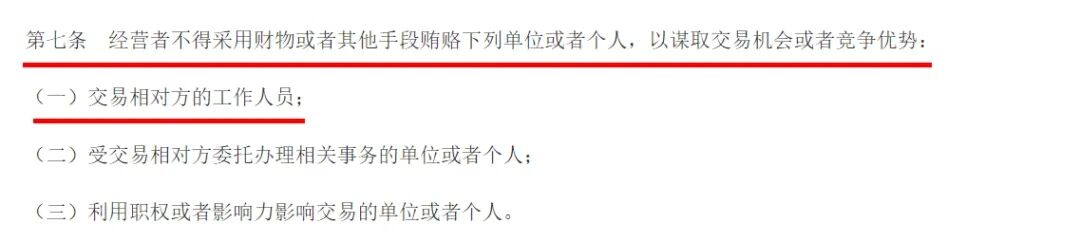 经过调查后,上海市场监督管理局认定,该企业违反了《中华人民共和国反不正当竞争法》第七条第一款第一项内容的相关规定:即经营者不得采用财物或者其他手段贿赂下列单位或者个人,以谋取交易机会或者竞争优势的第一项:交易相对方的工作人员。