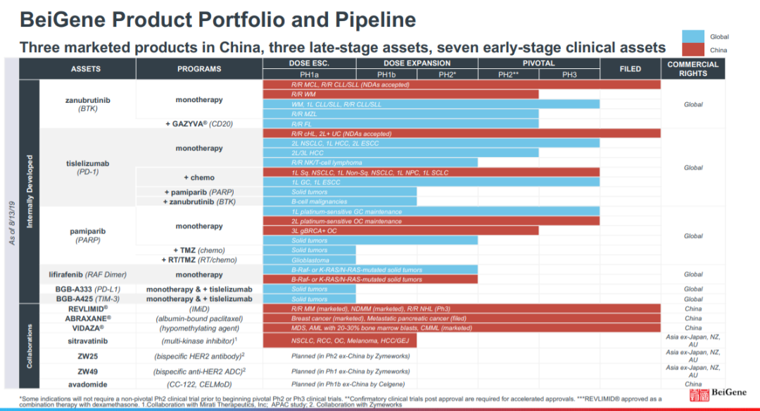 这就解释了为什么很多生物技术公司愿意投资在增加管线上。以下为百济神州的产品管线图: