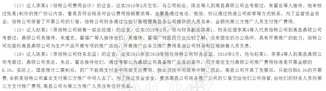 倍特药业的招股说明书已经公示了一段时间了,越来越多的直接证据表明在巨额的学术推广费下面,是怎样的玄机,我们看一下判例,详细揭示了他们是如何做的?四川省高县人民法院刑事判决书(2020)川1525刑初43号