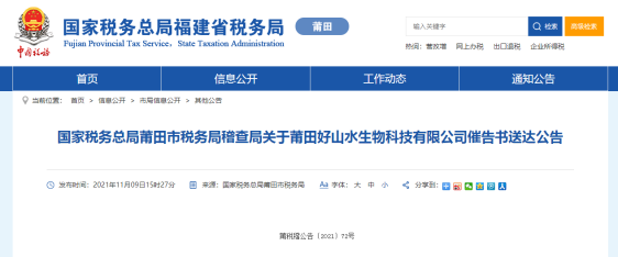 同日,莆田市税务局公示的对莆田好山水生物科技有限公司的税务处罚决定书(莆税稽罚〔2021〕13号)显示,经查实,莆田好山水生物科技有限公司2017年8月28日~2019年7月8日期间在无生产经营能力、与受票企业间不存在真实的业务交易情况下,虚构业务为海南通用同盟药业有限公司、必欧瀚生物技术(合肥)有限公司、三洋药业等公司虚开增值税普通发票59张,合计金额为477.70万元,税额为14.33万元,价税合计492.03万元。