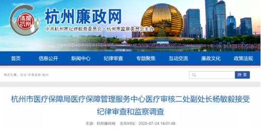 近期,中国检察网公布了2020年7月杭州市医疗保障局医疗保障管理服务中心医疗审核二处副处长杨敏毅接受纪律审查和监察调查后,以涉嫌受贿罪提起诉讼的起诉书。