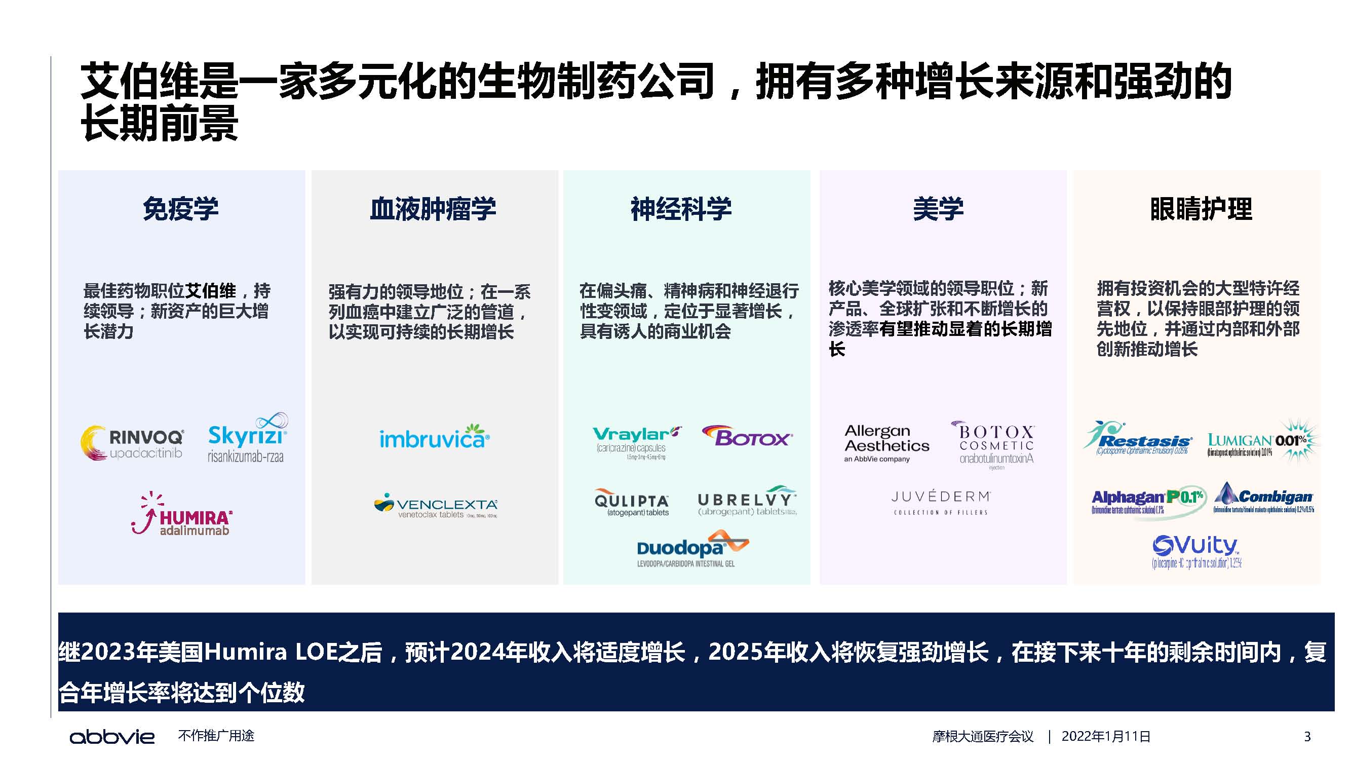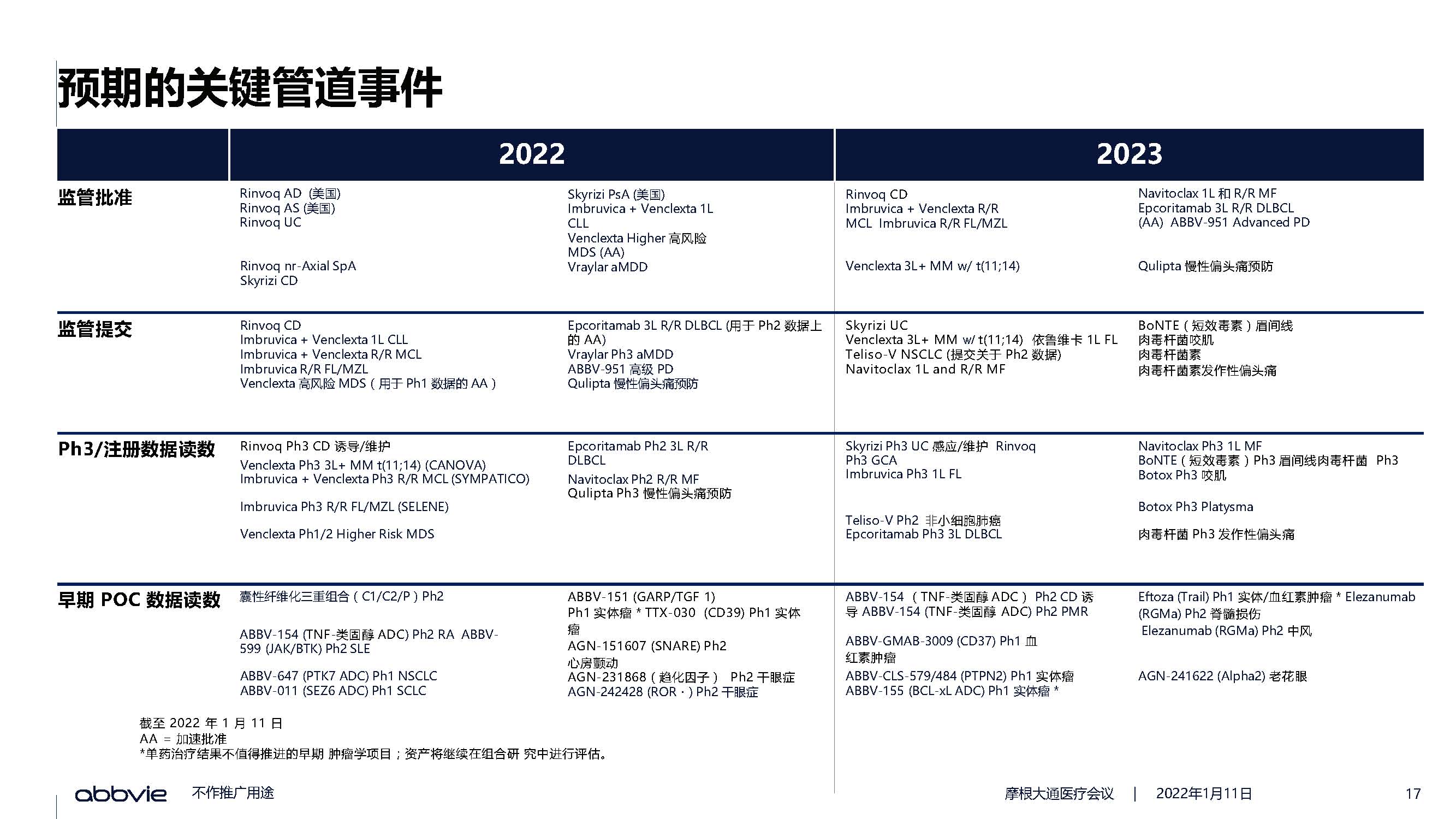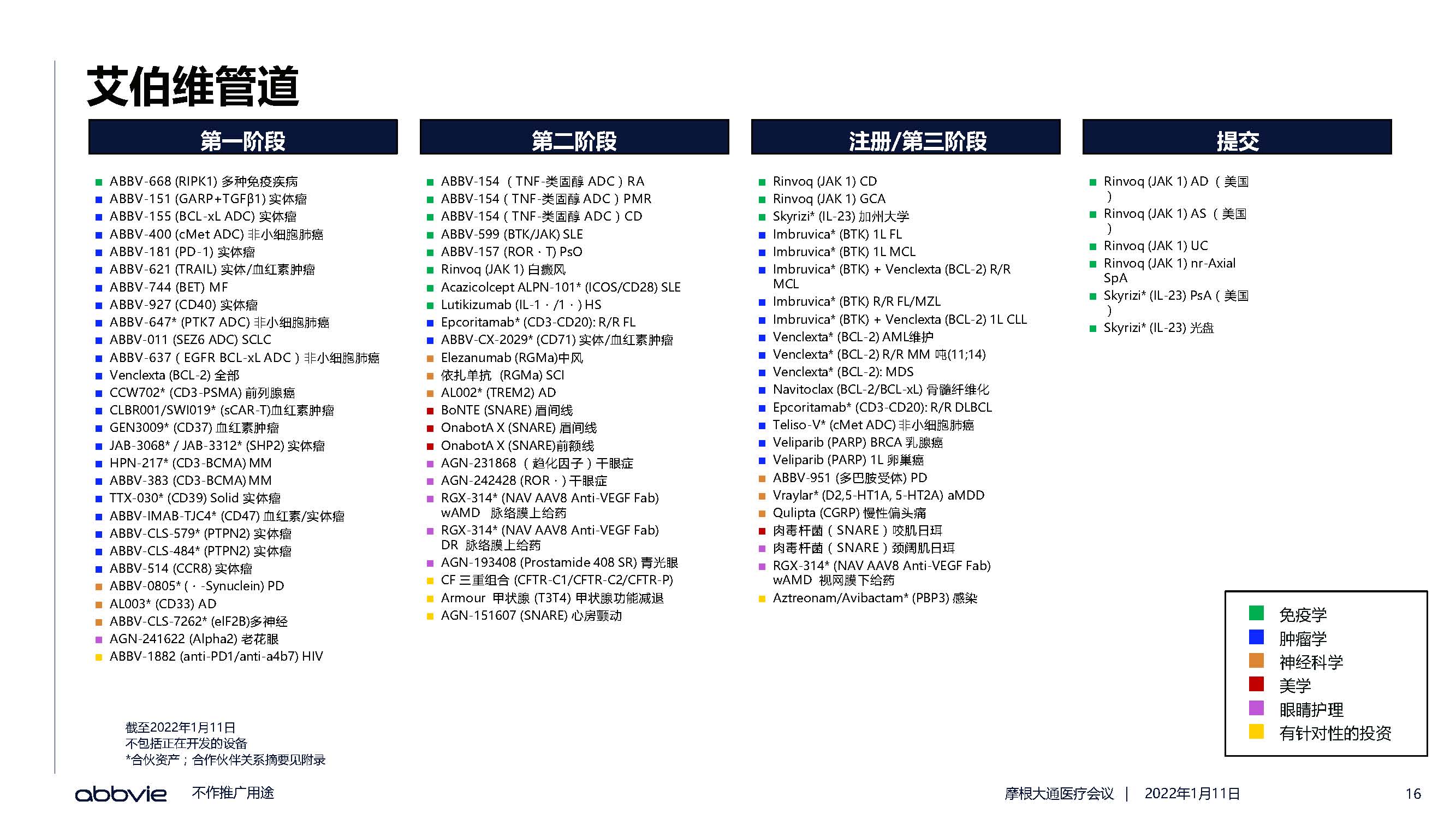本文整理了艾伯维(AbbVie)、安进(Amgen)、渤健(Biogen)三家医药公司在本次会议发表的演讲内容,欢迎阅读。