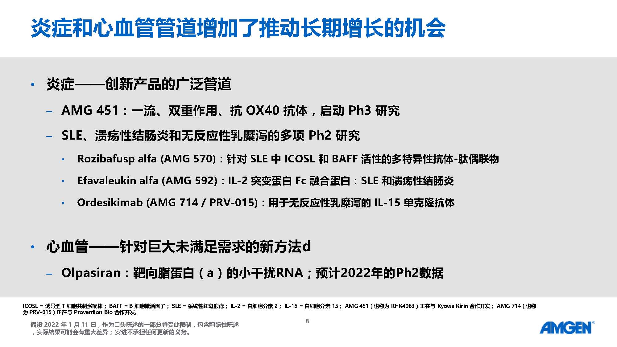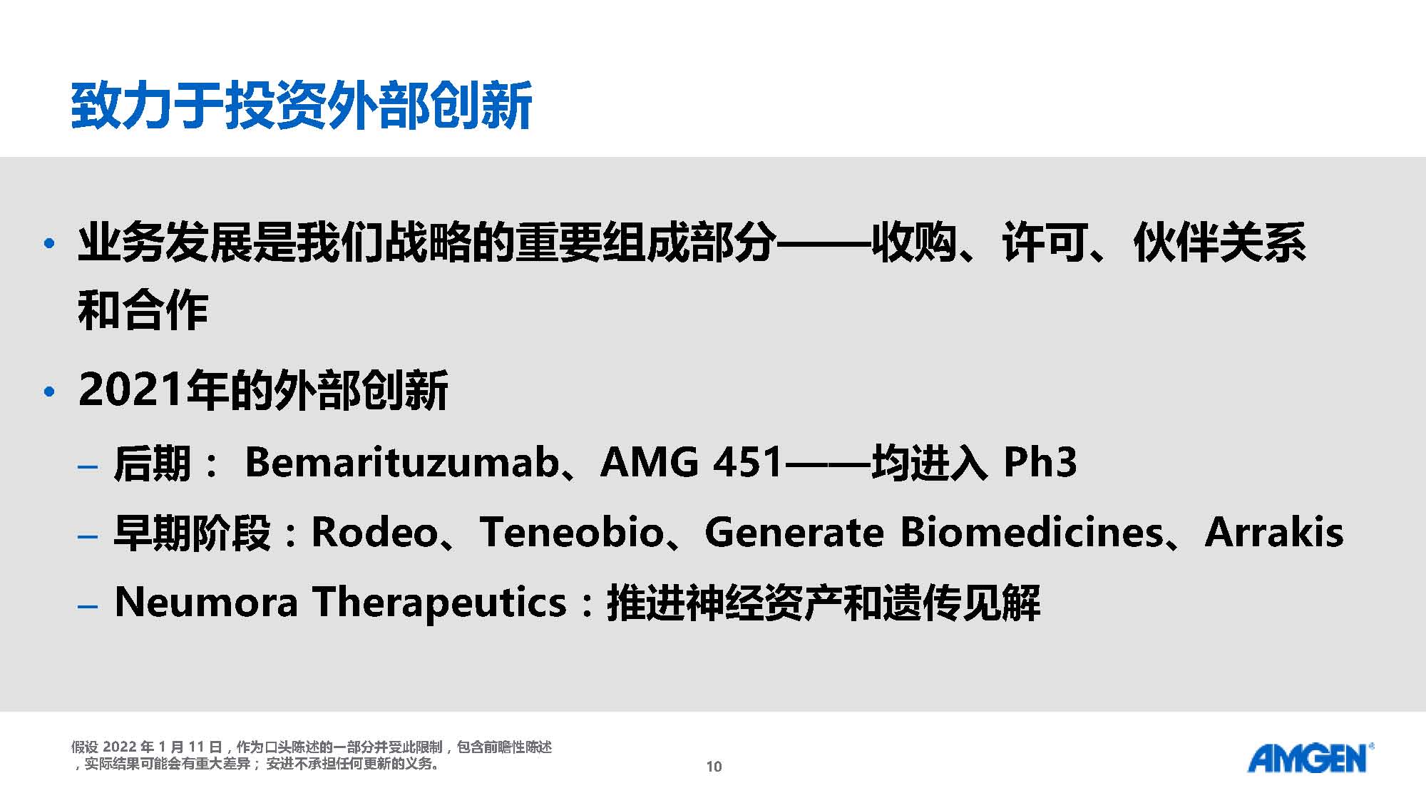 而且作为行业领先,安进有能力实现具有吸引力的长期增长,而且致力于投资外部创新,2021年早的Rodeo、Teneobio、Generate Biomedicines、Arrakis以及后期的Bemarituzumab、AMG 451都——均进入了 Ph3,而且业务发展是安进战略的重要组成部分。