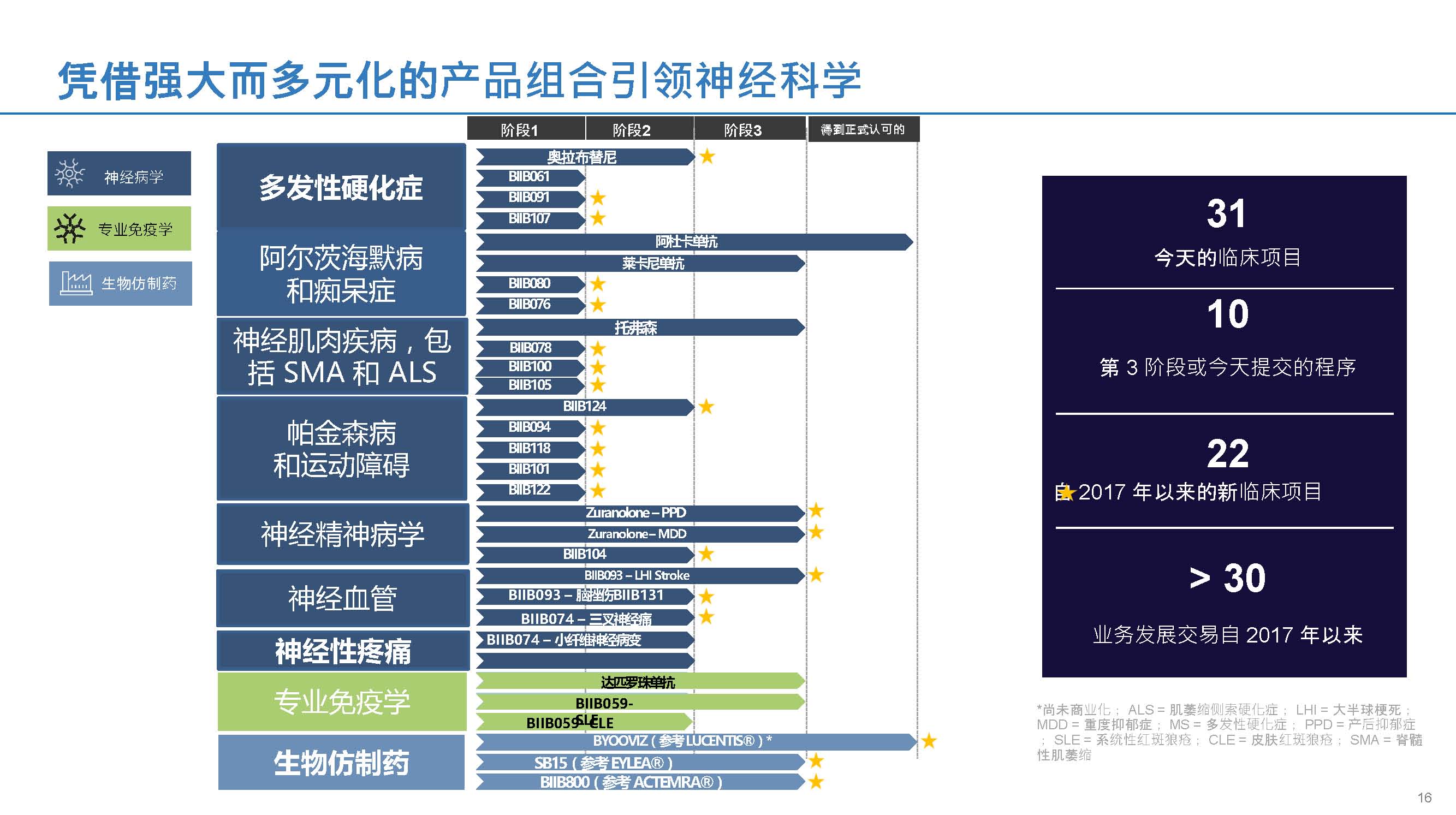 1.神经病学:扩大 Biogen 在神经科学领域的领导地位跨越多元化管道的 25 个项目;
