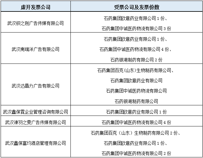 在上篇文章中,我们汇总分析了石药集团商业贿赂与购买假发票司法判例。根据公布案例和公开资料,石药集团及其子公司涉及刑事案件达到八起,其中包括五个行贿案件,三个虚开发票刑事案件。在税务查账风波中,武汉市税务局公布了6个虚开增值税发票公司的虚假发票流向多家石药集团旗下公司。