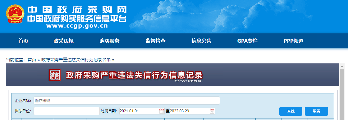 经不完整查询,中国裁判文书网上公布的关于医药器械贪污受贿的刑事案件共有上千条,2021年中国政府采购网上,总共有201家供应商因为“串通投标”被列入了“政府采购严重违法失信行为记录名单”,其中就包括20家医疗器械企业。按情节不同,分别被处以罚款、1-3年内禁止参加政府采购活动等处罚。要知道,这可不仅仅是这几十家械企的事,根据规定,这些被罚禁入政府采购的械企法人以及项目代理人名下的其他公司,也将同步被禁止参加一切政府采购活动,并在其档案上留下了记录。