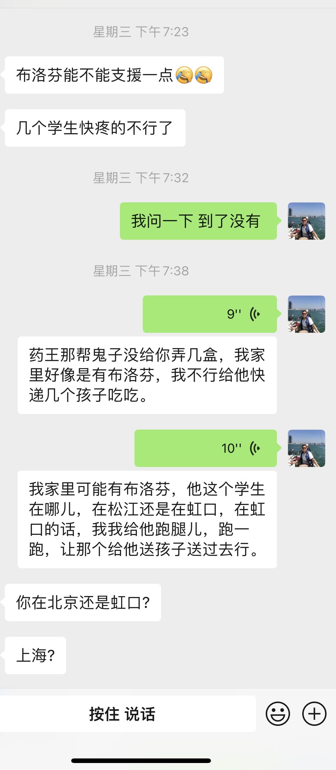 我这批1100片布洛芬到了之后至少有几十个正在发烧的人送药上门,快递,跑腿和他们派人来取药,缓解了他们的痛苦,如果两周前那八百片到了,能解决多大问题,而不是被人高价去卖,恶意发国难财!