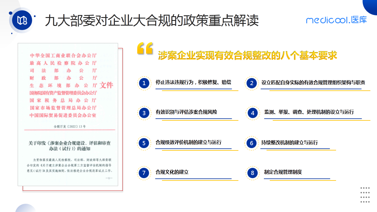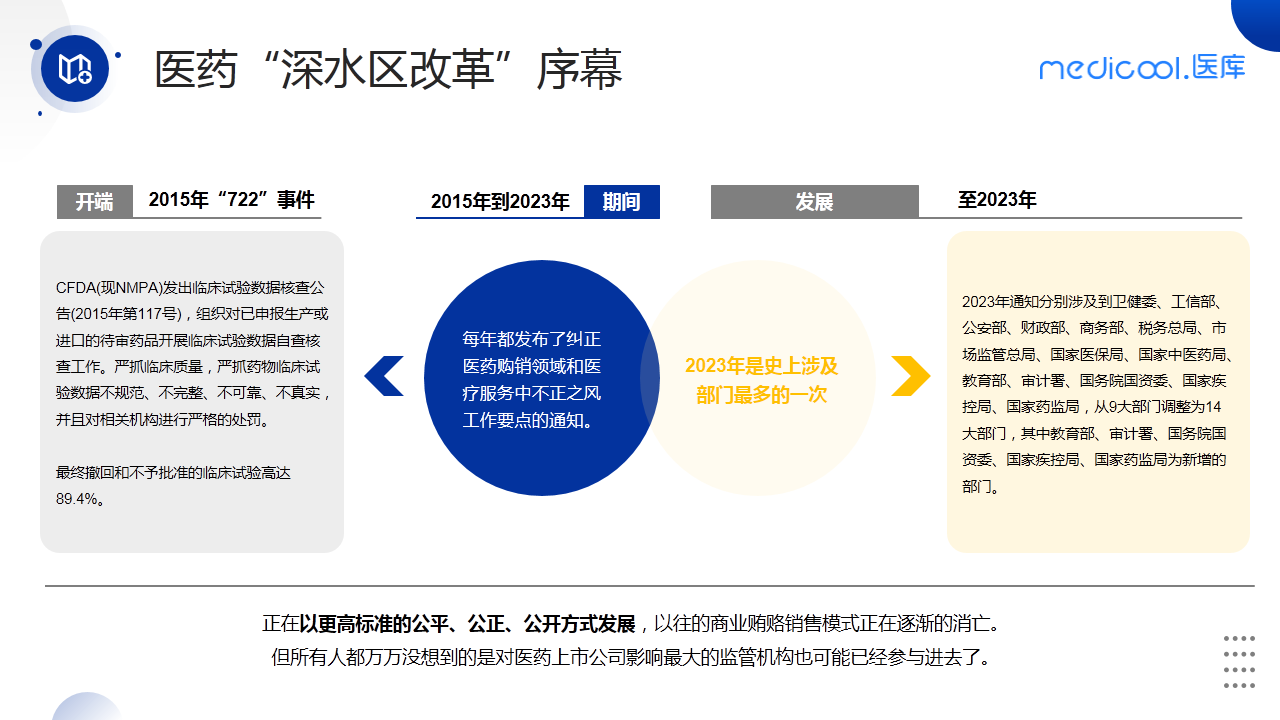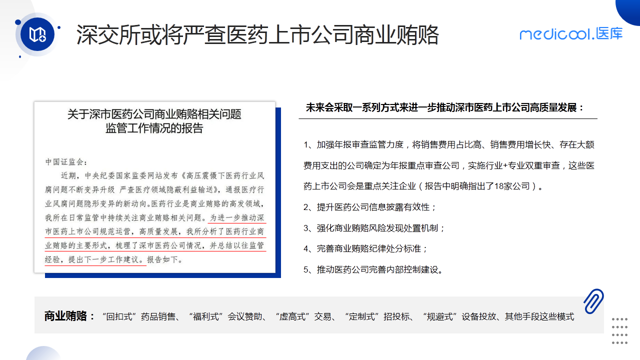 近期关于医疗反腐与药企合规的话题越来越深入,而如何应对也是摆在众多企业,特别是拟上市公司面前的一道必答题,而对很多中小企业来说却是一道生死题! 下面是医库公司董事长涂宏钢于2023年六月初的一次内部讲课课件,应多位同道要求,现公开发表出来,需要原始PPT的,或者需要咨询与合作相关问题的,可以加我微信联系。 以下是PPT内容