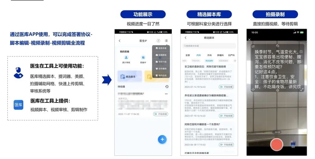 医学编辑团队根据对应科室、医生擅长领域、热点医疗话题撰写选题和脚本,医生只需通过医库APP选取合适的脚本或者进行定制化内容。