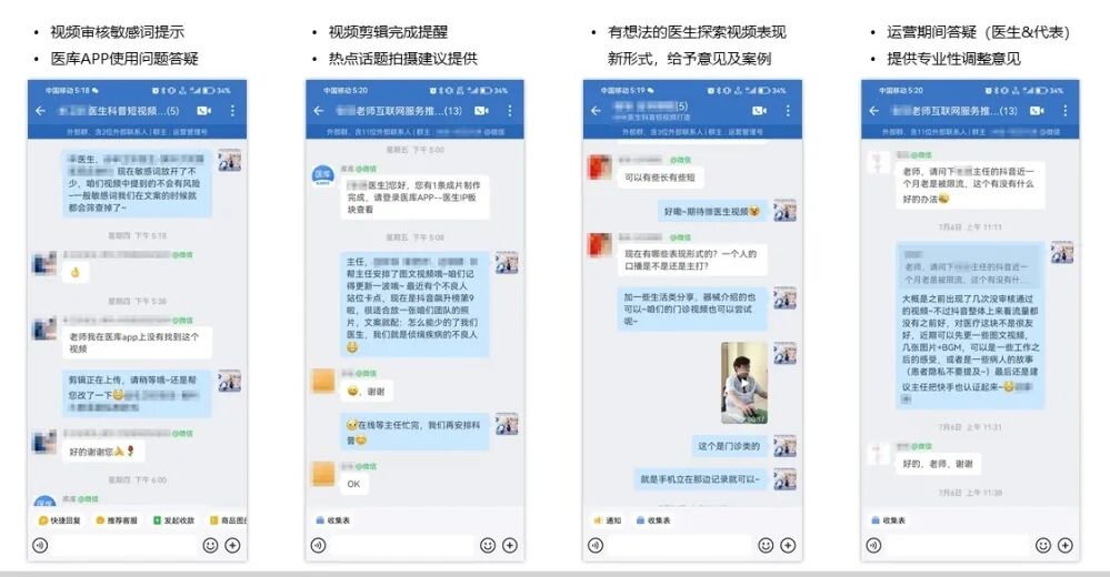 运营团队对视频进行初步审核后,文案校对团队负责将视频字幕完整扒出,再进行优化选题,优化文案结构,设想视频形式,优化违反广告法词语等,对有问题的内容指导医生修改。