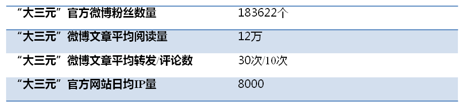 “二百六”科技与秀红资本经过长期合作后,配合默契,多次重大决策后带领企业不断做大做强,随着业务的进展,公司决定收购一家新媒体公司,这种具有创新形态的新媒体可以更好地传播和开拓公司业务,对弥补“二百六”产业链的完整性发挥巨大作用。这时一家叫“大三元”的新媒体公司进入视线,该公司成立已有5年多,微博拥有18万粉丝,网站日浏览量数千。经过尽职调查,“二百六”科技的B同学统计了自近一个月来“大三元”的微博和网站的各项数据: