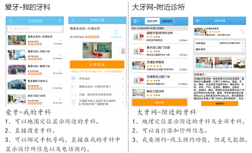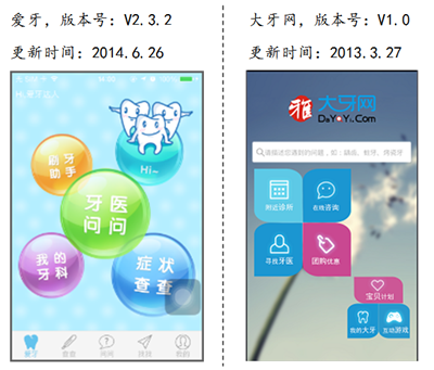 (1)两个牙科O2O 平台移动端的比较:爱牙和大牙网