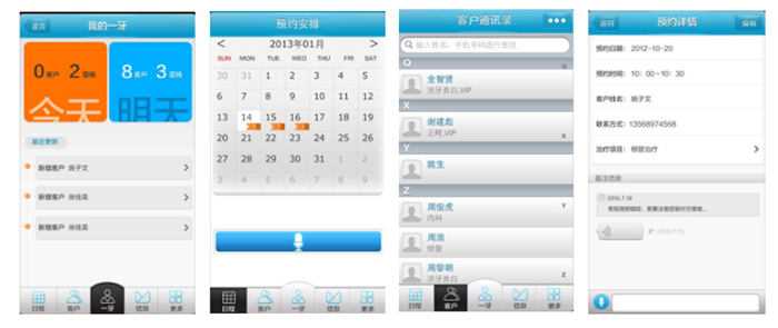 一牙好牙医,2013年2月17日发布了V1.1版本,2014年4月28日更新至V1.5.3,共迭代更新了9次,Web端和移动端开发同步进行。一牙微诊所可以协同一牙好牙医的诊所后台管理系统,即诊所小型CRM系统,一起管理所有微信平台的客户预约信息。