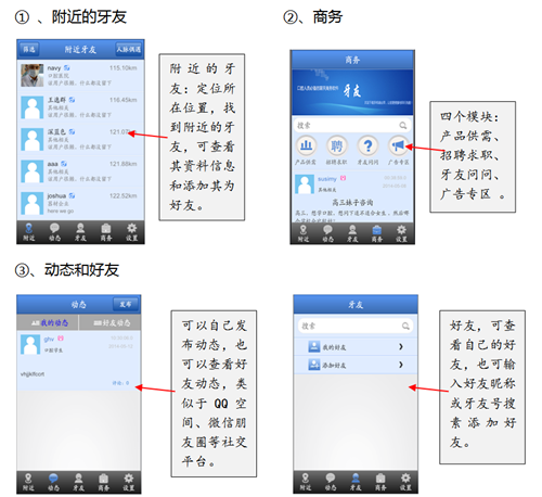 牙友,5人开发团队,2014年3月牙友安卓版发布,产品仅实现了基本功能,目前产品没有迭代更新信息,ios版本尚未发布,目前项目处于停滞阶段。