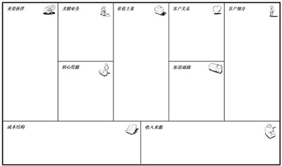 几个小时以后,大家的讨论还在继续,其实这种没有结果的讨论经常发生,尤其是在大公司,最后的结局往往都是老板拍板做出最后的决定。我们并不是说与会者不够聪明,只是他们总拘泥于自己的部门利益不能自拔,还有一个原因是没有选择正确的工具,缺乏全局观。我们可以用图形和可视化的语言来让问题更加清晰明了,就是——“商业模式画布“ 。
