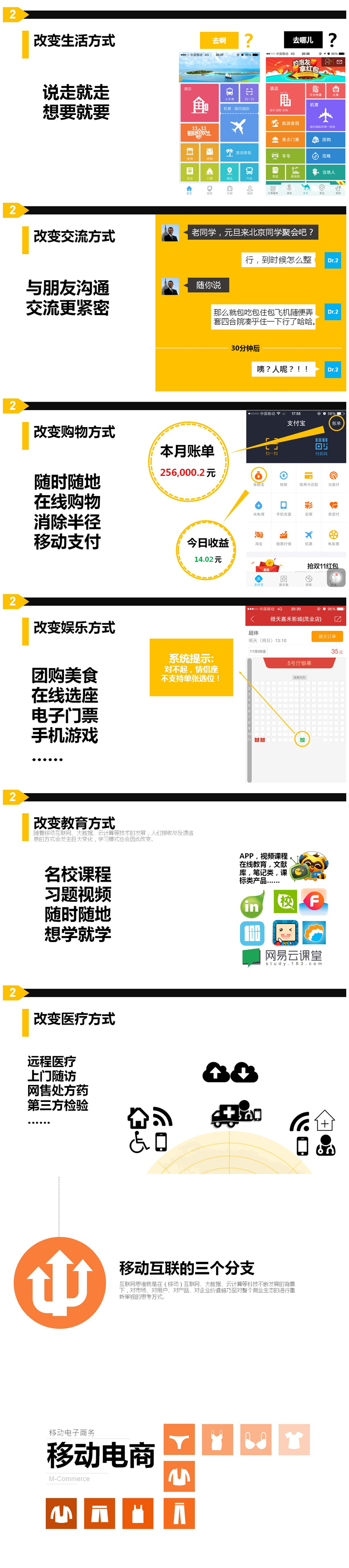 PPT中所涉及到的移动互联的三个分支-移动电商、在线教育和移动新媒体都是与移动医疗最密切相关的三个互联网行业,它们之间一直是相互借鉴,相互渗透,相互学习的。希望各位读者批评指正。