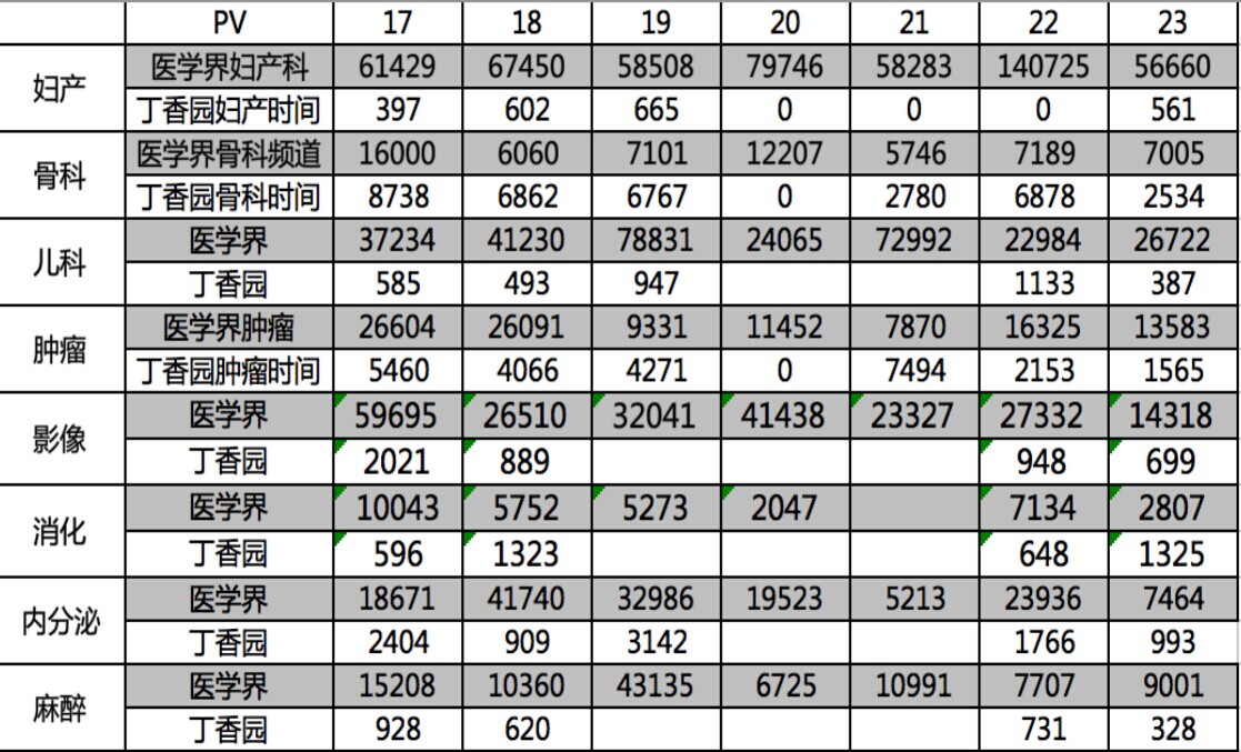 综合分析微信端流量和网站端的流量,丁香园面向医生的日均PV约为20-25万,目前医学界系列日均PV约在100~120万,是丁香园的5倍左右。即使
