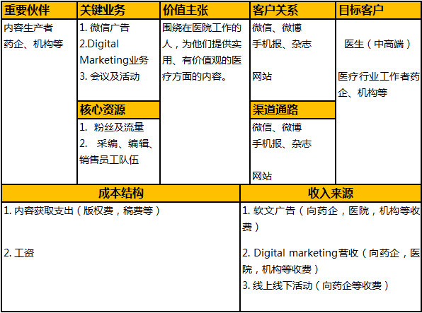 医学界的商业模式画布: