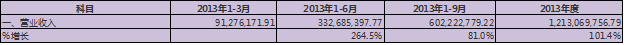 万达信息在2013年的营业收入为12.13亿元,较2012年同比增长37%。那我们该怎么预测2014年的营业收入呢?如果我们100%判断准备的话,几乎是不可能的,所以按上市公司最终公告的审计结果为准。不过,为了做出可信的预测,我们必须做出一定的假设,当然这些假设要具有相当高的可信度。