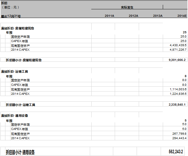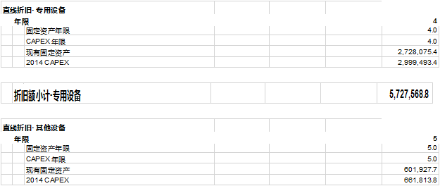 现在我们可以根据图表18-1定义的折旧年限和残值率开始计算2014年的折旧了,如下表 18-6