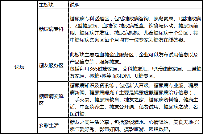 ① 对血糖仪制造企业,论坛开设了“糖友服务区”,专门为这些企业开设专栏,帮助企业和患者之间进行互动。这些企业包括血糖仪拜耳,罗氏,艾科,三诺等。其次,还包括移动医疗企业微糖、U糖也在糖友服务区中开设了版块,内容主要是普及糖尿病知识和宣传介绍自己的产品。在糖尿病交流区的免费试用版块,企业还能发布免费试用主题,进行产品宣传。